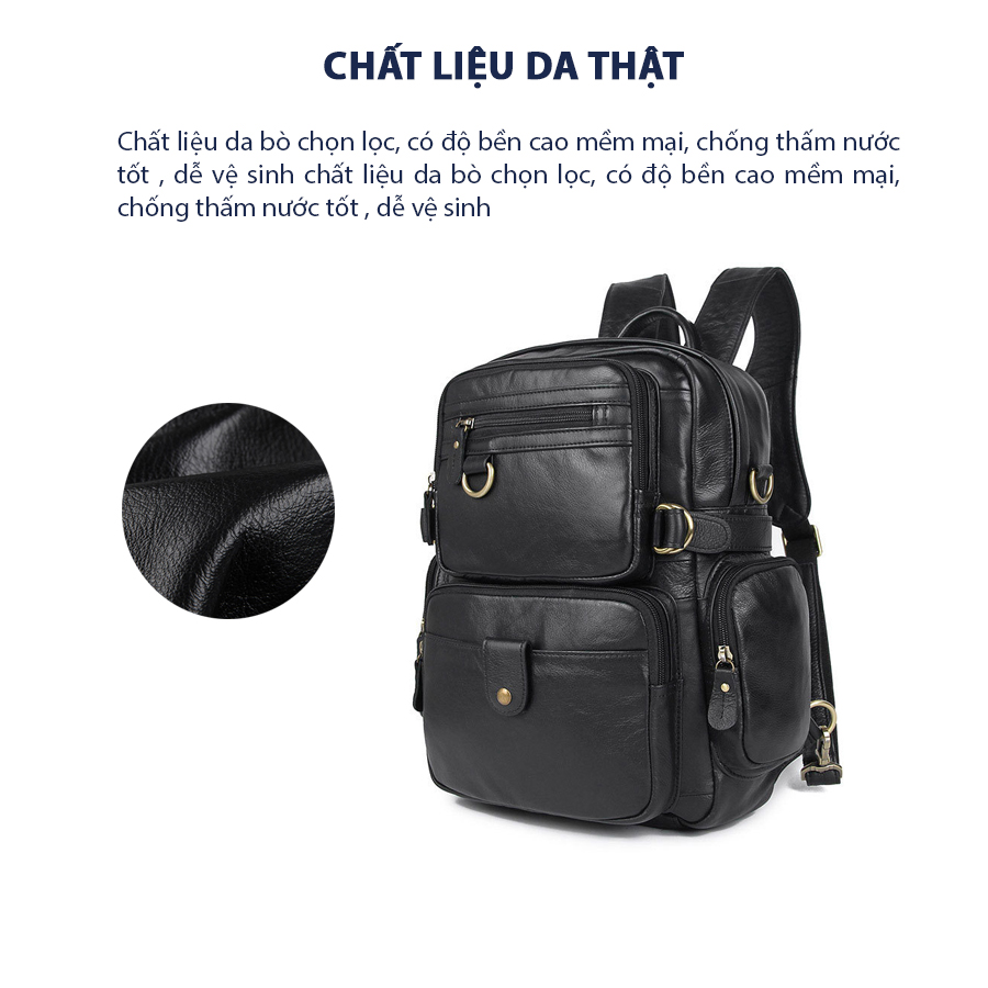 Balo làm bằng chất liệu da thật, chống thấm nước tốt, độ bền cao.