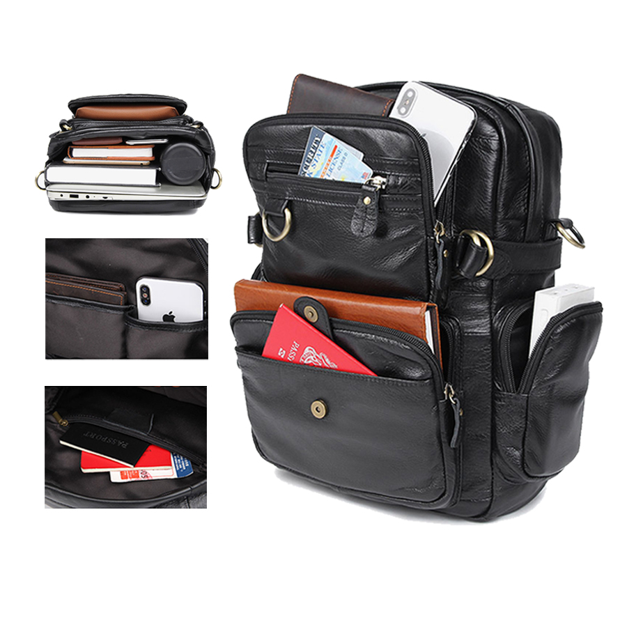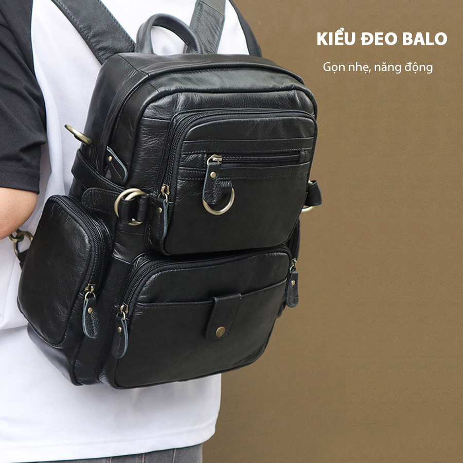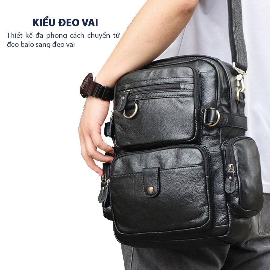 Balo da thật kiêm túi đeo chéo 3 màu: nâu đỏ, nâu, đen có thể đáp ứng được các yêu cầu đa dạng của người dùng, dành cho mọi khách hàng từ doanh nhân, dân văn phòng đến các bạn học sinh, sinh viên với nhiều phong cách và sở thích khác nhau.
