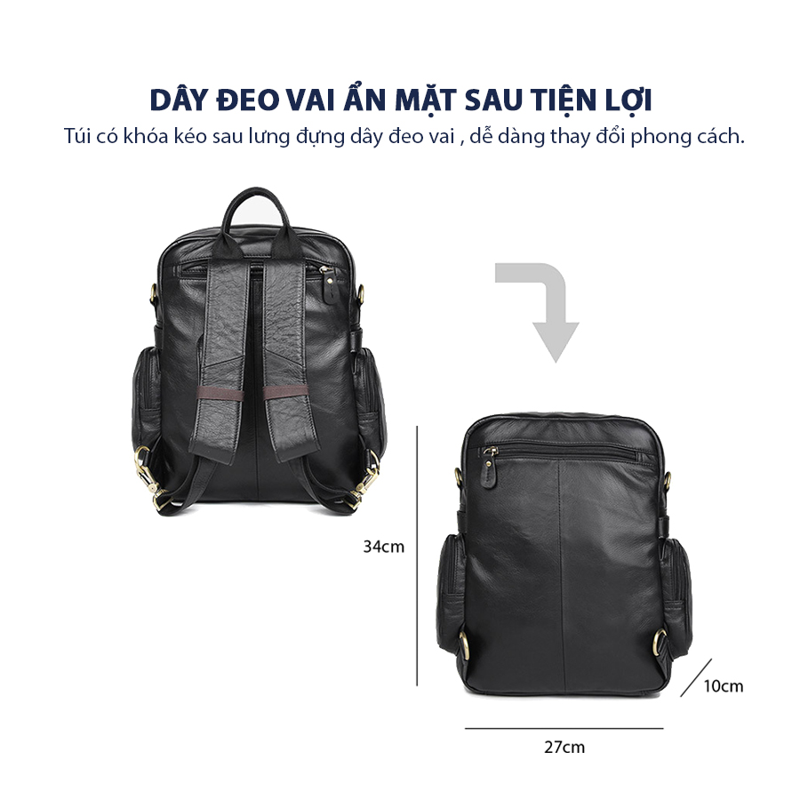 Vừa là balo lại vừa có thể đeo chéo , lại có thể xách như túi xách . Thiết kế này tiện lợi cho người dùng có thể thay đổi nhiều phong cách .