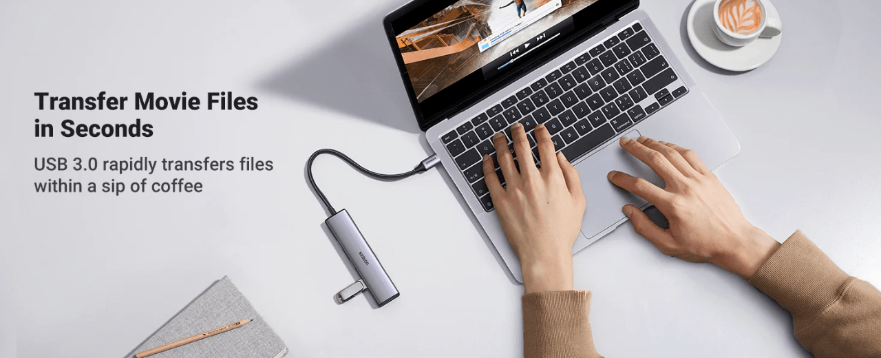 Ugreen 20841 hỗ trợ truyền dữ liệu SuperSpeed qua USB 3.0 lên đến 5Gbps, nhanh hơn 10 lần so với USB 2.0. Bạn có thể truyền tệp, phim HD và bài hát sang thiết bị khác nhanh chóng