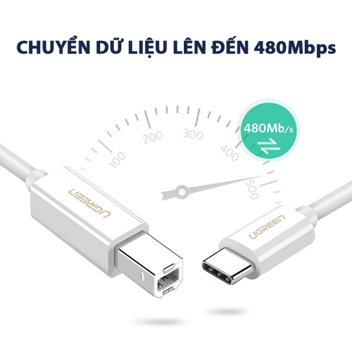 Dây Máy In USB-C Sang USB 2.0 Type B Dài 1M (Hỗ Trợ Âm Thanh) Ugreen 40560 lý tưởng để kết nối máy tính xách tay được trang bị USB-C, máy quét được trang bị USB loại B, máy in, máy chủ, máy fax, ổ cứng, máy ảnh, piano và các thiết bị USB khác.