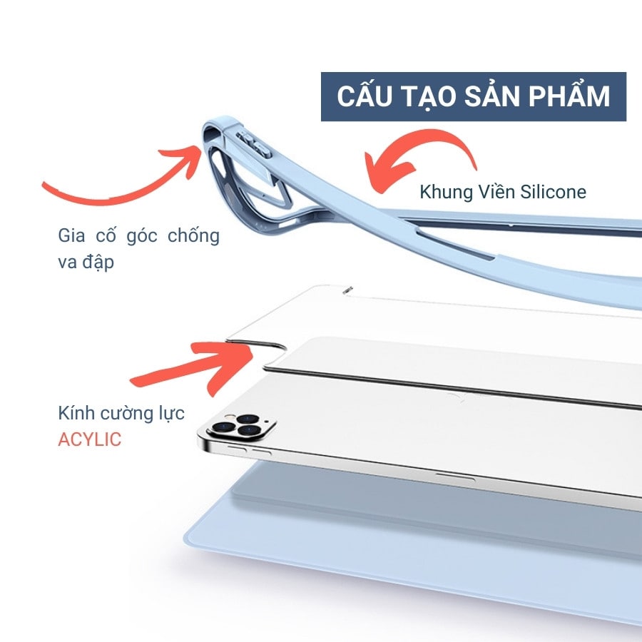 - Nhựa Acrylic thế hệ mới: Tăng độ cứng gấp 20 lần, bảo vệ iPad khỏi va đập và trầy xước hiệu quả.
