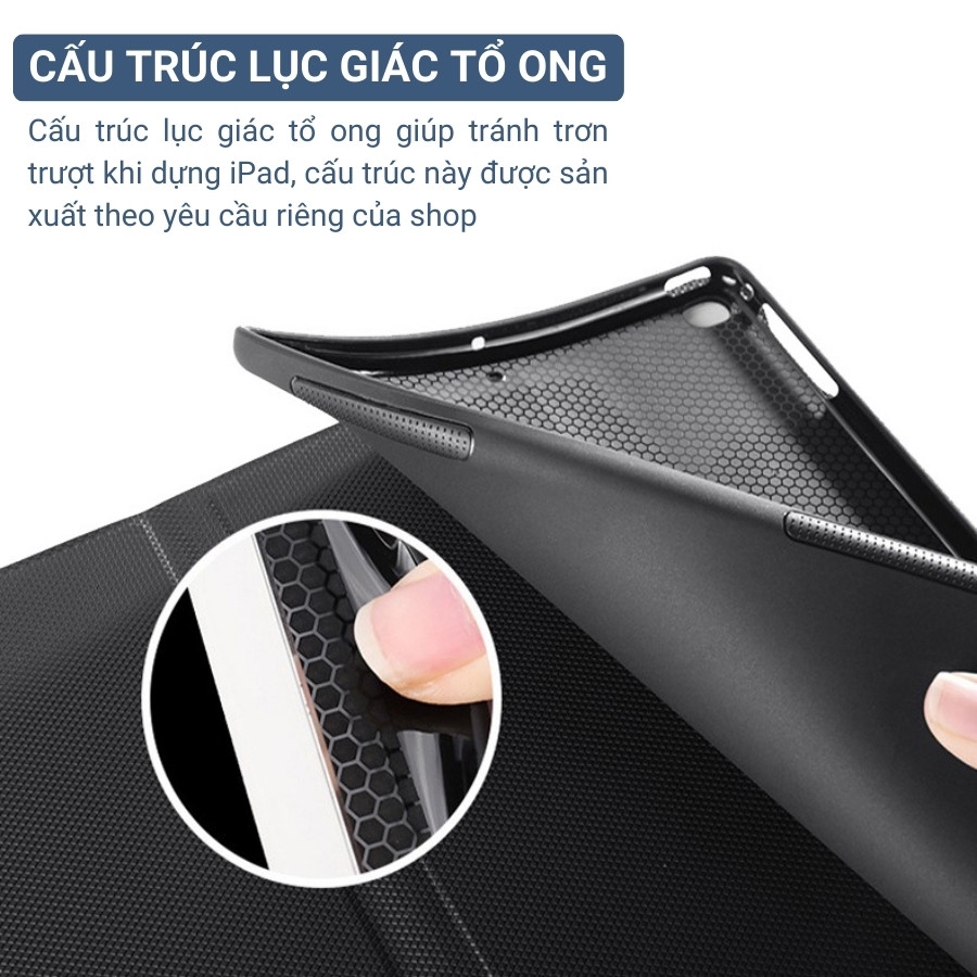- Chống trượt: Ốp iPad có cấu trúc hình lục giác tổ ong, giúp tránh trơn trượt khi sử dụng trên mặt bàn.